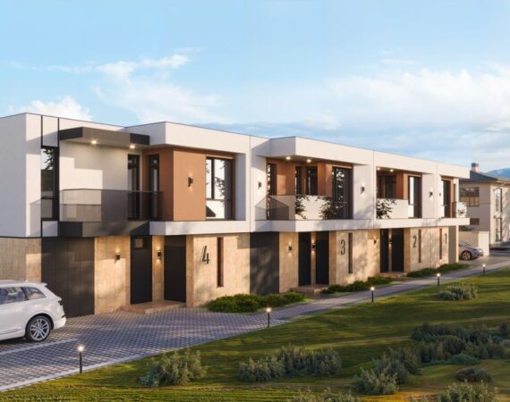 Площади и цены: дом 1 – 208,58 кв.м, дом 2 – 214,46 кв.м, дом 3 – 212,62 кв.м и дом 4 – 194,85 кв.м. Цена – от 1800 €/кв.м.